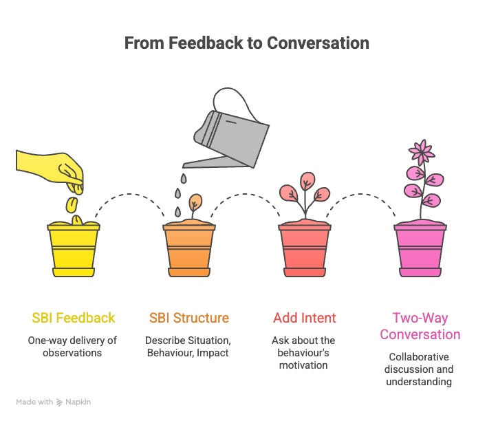 The Situation-Behaviour-Impact model (SBI) is one of the most practical tools for structuring feedback clearly and fairly.